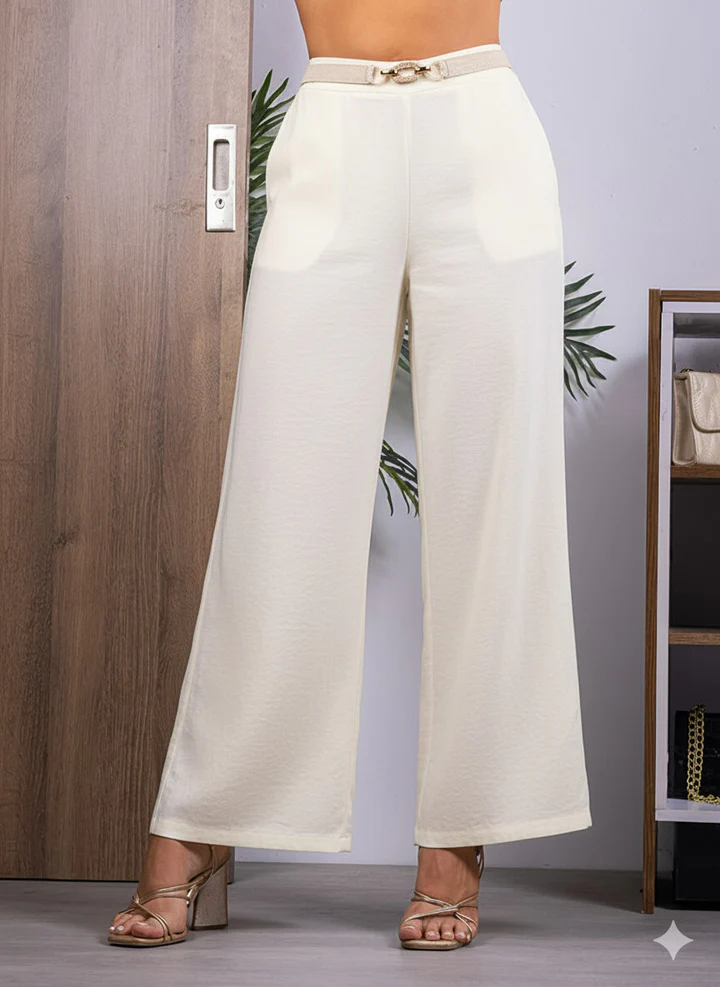 Un básico infaltable en tu clóset ✨ Este pantalón palazzo en tono neutro estiliza tu figura gracias a su tiro alto y caída amplia. Su diseño cómodo y sofisticado lo hace perfecto para looks casuales o formales.